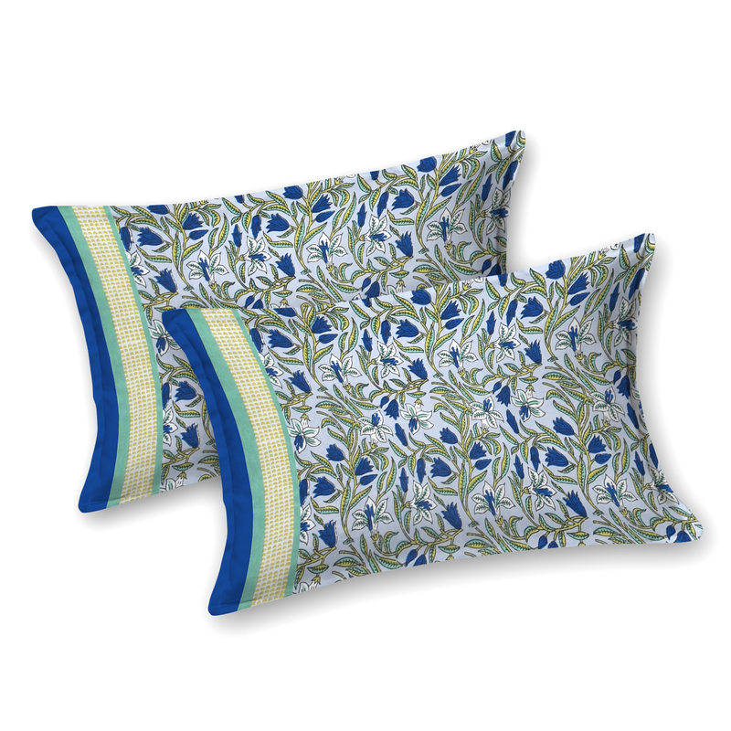 Kaya – Pure Cotton Bedsheet Set with Pillow Covers (Blue) – (95×108 inches)