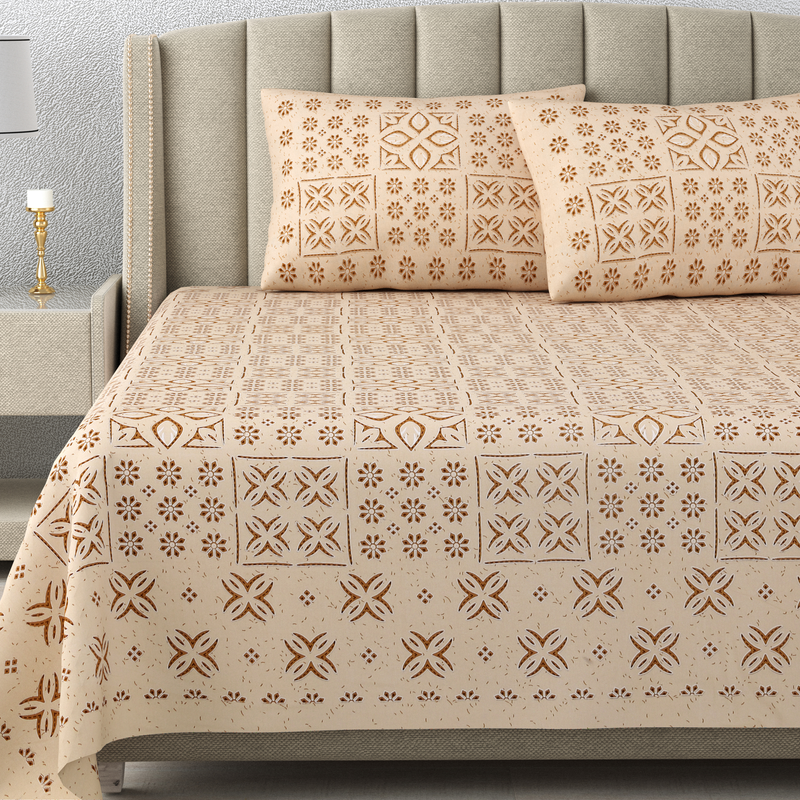 Premium 280 TC 100% Cotton King Size Bedsheet with 2 Pillow covers 300TC – 90 x 108 Inches – Patch Beige